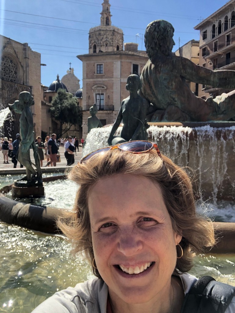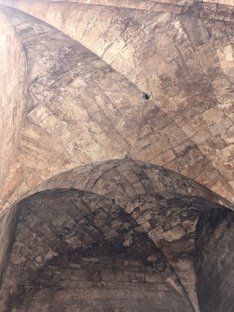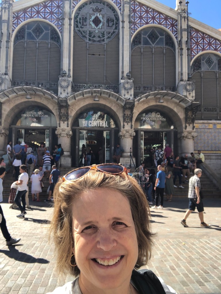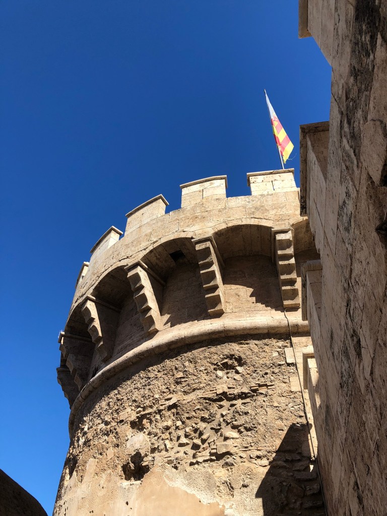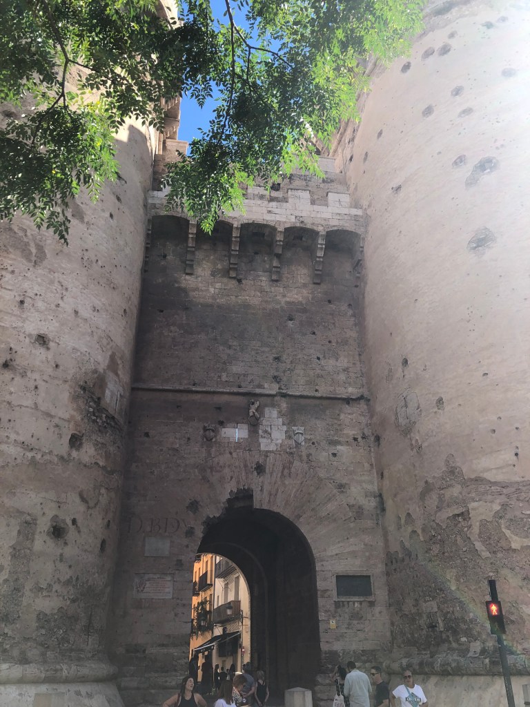 Walking around the old city is a true pleasure. It is always bustling with people whether it is tourists on bike or walking tours, locals doing their daily shopping or everyone just out for a walk and a bite to eat (any time is eating time). There are plazas after plazas each one with its own distinct character and all of them with at least one restaurant with tables outside. The architecture makes it just a feast for novice and professional photographers as well–medieval towers, beautiful gothic churches , charming store fronts and narrow winding pedestrian streets. It’s easy to get lost just looking up and taking photos if you aren’t careful! There is also almost also always something going on whether it is a festival or market and there is always some kind of music. During my meandering I ran into First Year students on a scavenger hunt for class, other students shopping in the Mercado Central, picked up some yummy (and free) Horchata with cake and witnessed a spontaneous dance party in the Plaza de la Reina. I ended up going back through the Plaza de Ayuntamiento down to Calle Colon, stopping for a healthy salad and some brief shopping in El Cortes Ingles to get some ingredients for my weekend baking project (more on that on a next post). All in all a great day out!