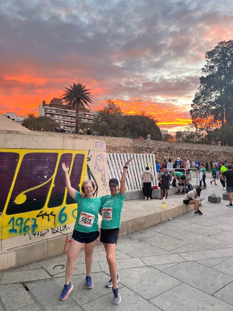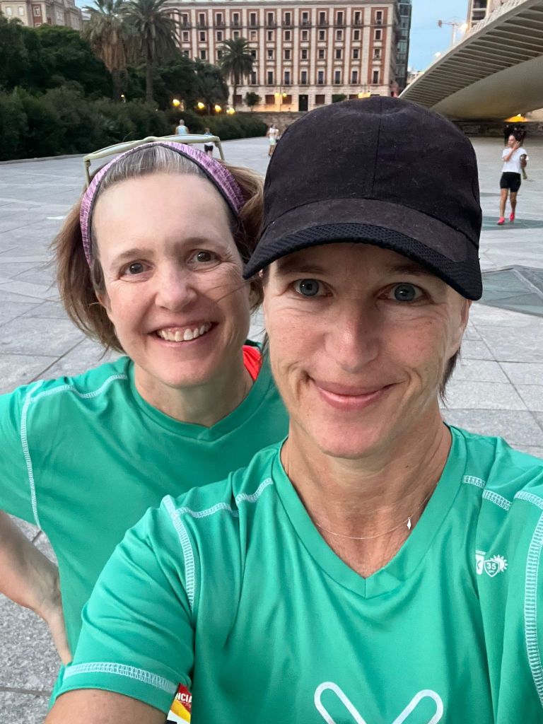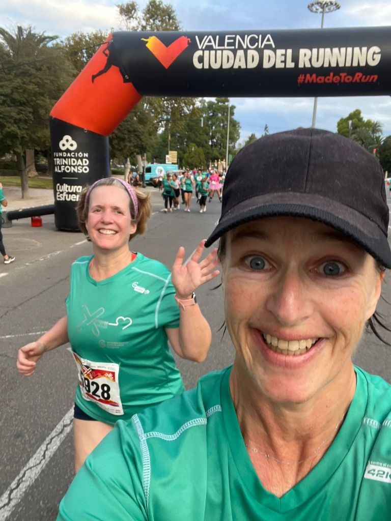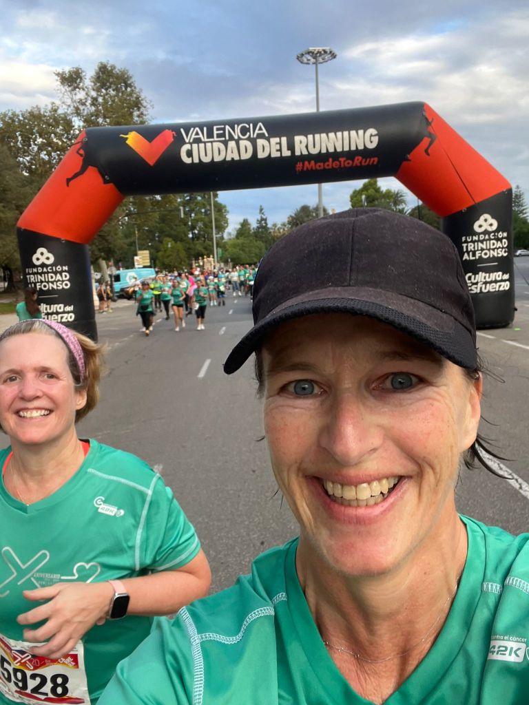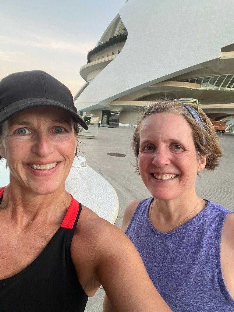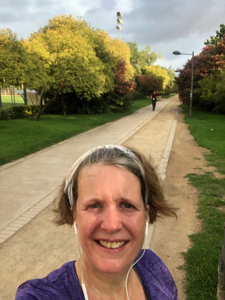 So with that background it shouldn’t be too much a surprise that I’ve started to run myself. However, those of you who know me well no that I’m not really a sporty person and I certainly have gone through my ups and downs with exercising regularly. Life in here in Valencia has gotten me outside walking, biking and working out in the park regularly and I have never been healthier. But I decided that I needed to step it up even more so I decided I wanted to start running. As far as I can remember I have never run a whole mile without stopping and I have never run a road race. My 1st goal was to be able to run a mile. So with the help of my amazing trainer, Katherine Williams, I started running this summer using a Couch to 5K app running three days a week. It hasn’t always been easy but I am happy to say that I’ve been doing it and not hating it which is a huge surprise. :). I’ve been doing intervals changing between running and walking. But finally on Sept. 14 I ran a solid 20 mins without stopping. So I reached my goal of being able to run a mile (and then some). Since then I’ve gone back to running intervals with the goal being able to do a 6K road race. And today was the day! I met that goal and did my first road race ever. A HUGE thank you to Katherine Williams who is the one who has been my biggest cheerleader through this. I really don’t think I would have done it with out her (even though I probably could have). Below are some highlights of our running together and my own training (we always took pics of ourselves after our run) followed by today’s road race.