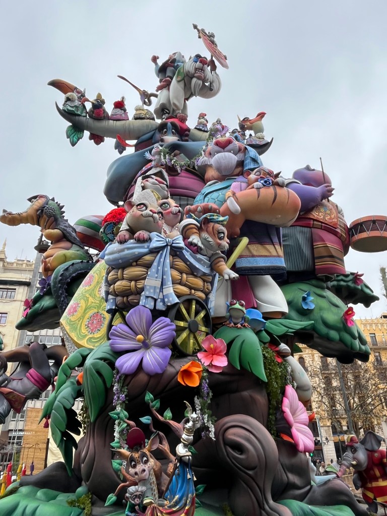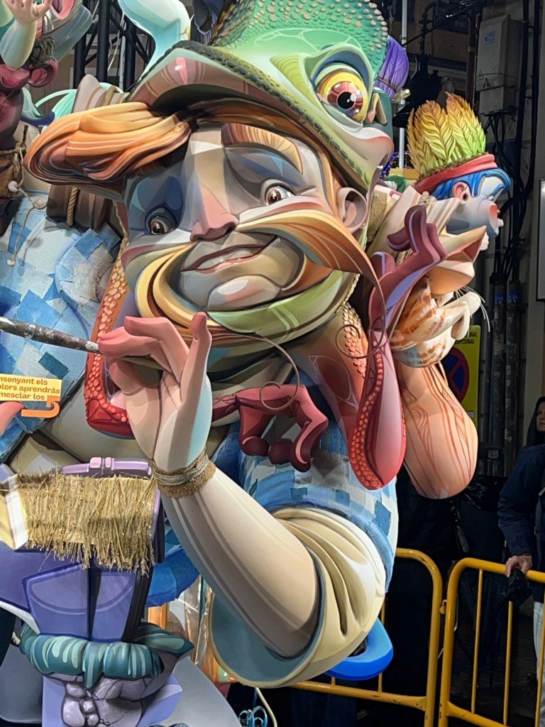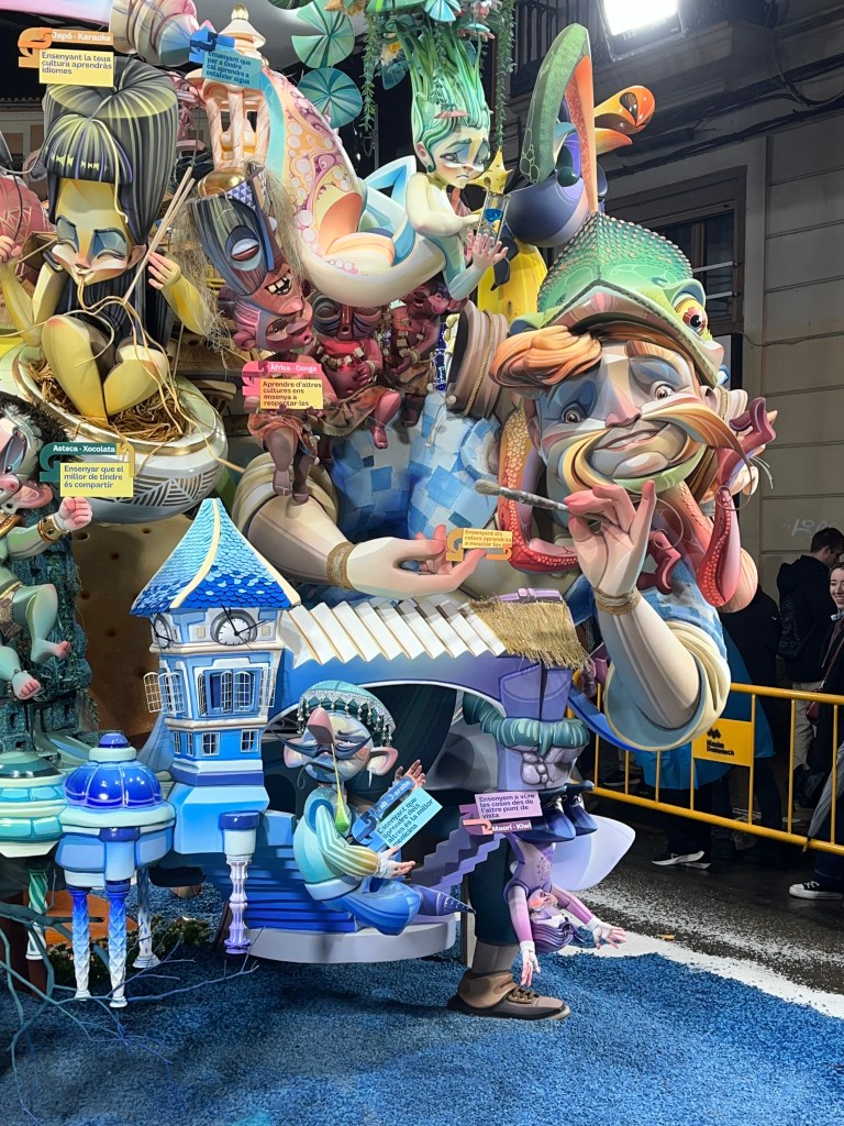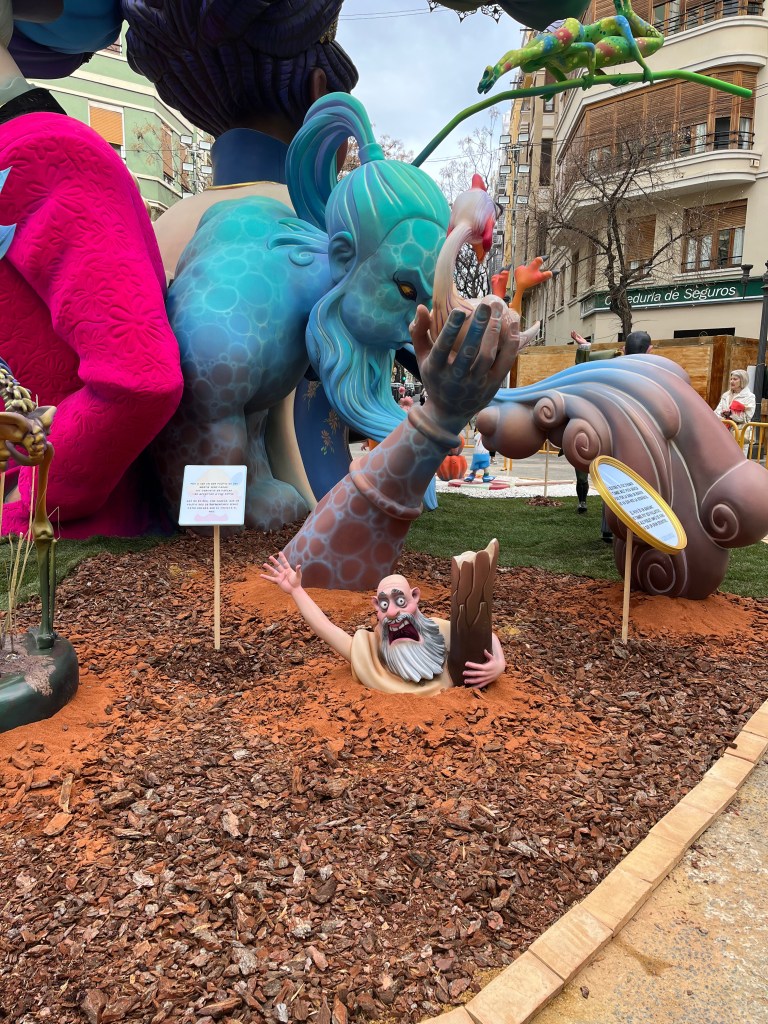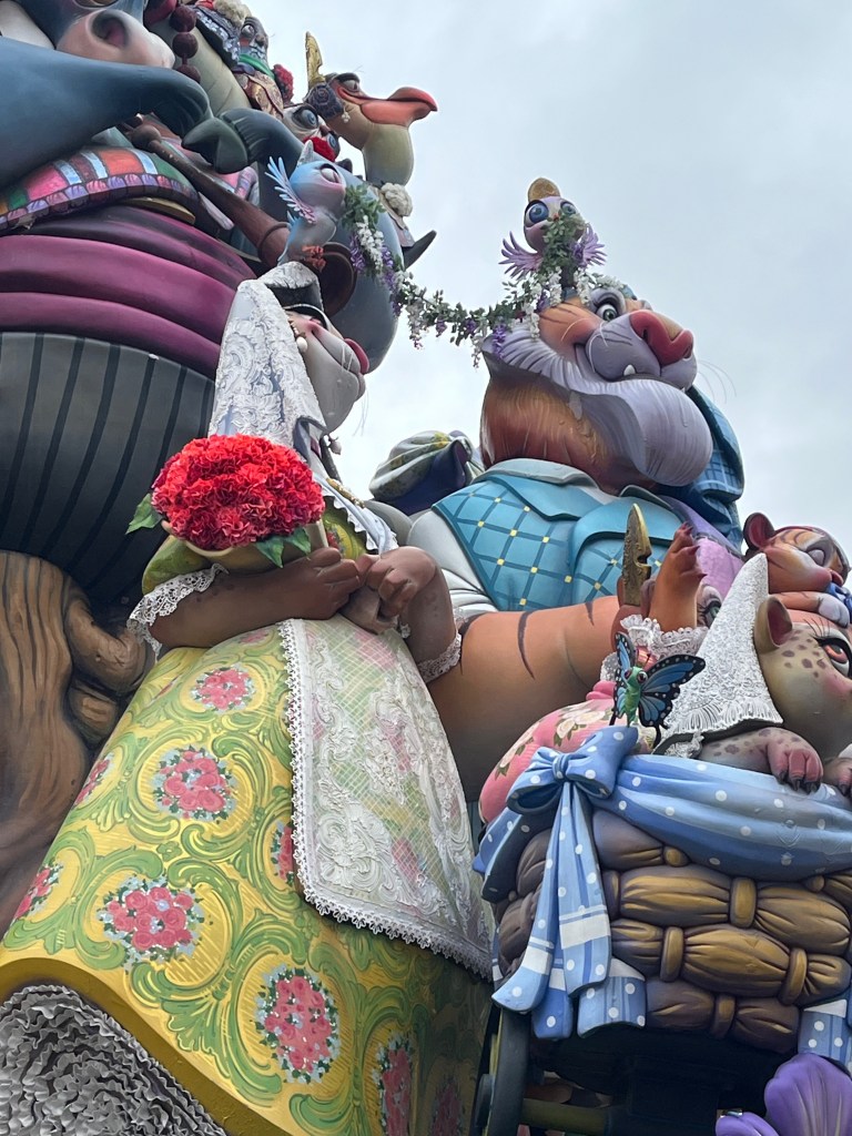 Fallas 2025 has come and gone. In a previous post I commemorated the last day of Fallas on March 19. Although the 19th is the actual holiday, the days leading up to it is when everyone celebrates all the various Fallas structures in the city. The city becomes a big party in the streets. This year Fallas was dampened (at least for me) by the weather. Most of Fallas was wet, rainy and grey. It didn’t stop the most dedicated falleros…..it´s amazing how many came out despite the rain. But nonetheless it did seem there were fewer people out and about. And it also meant that there seemed to be fewer petardos (fire crackers) and therefore slightly more peaceful. Although by the end, I my ears were definitely grateful for the respite.