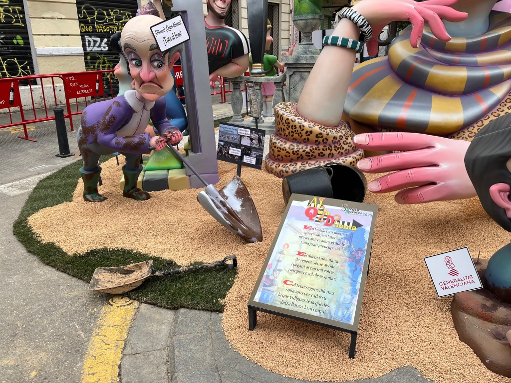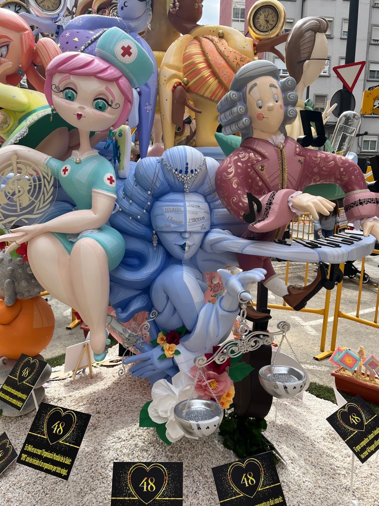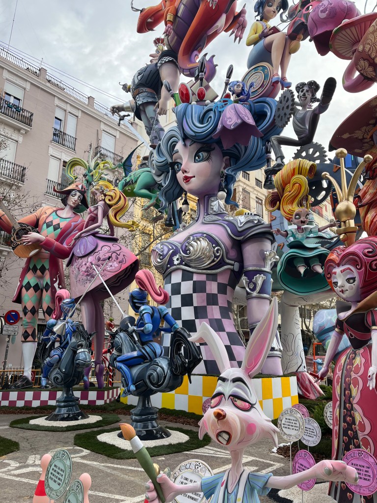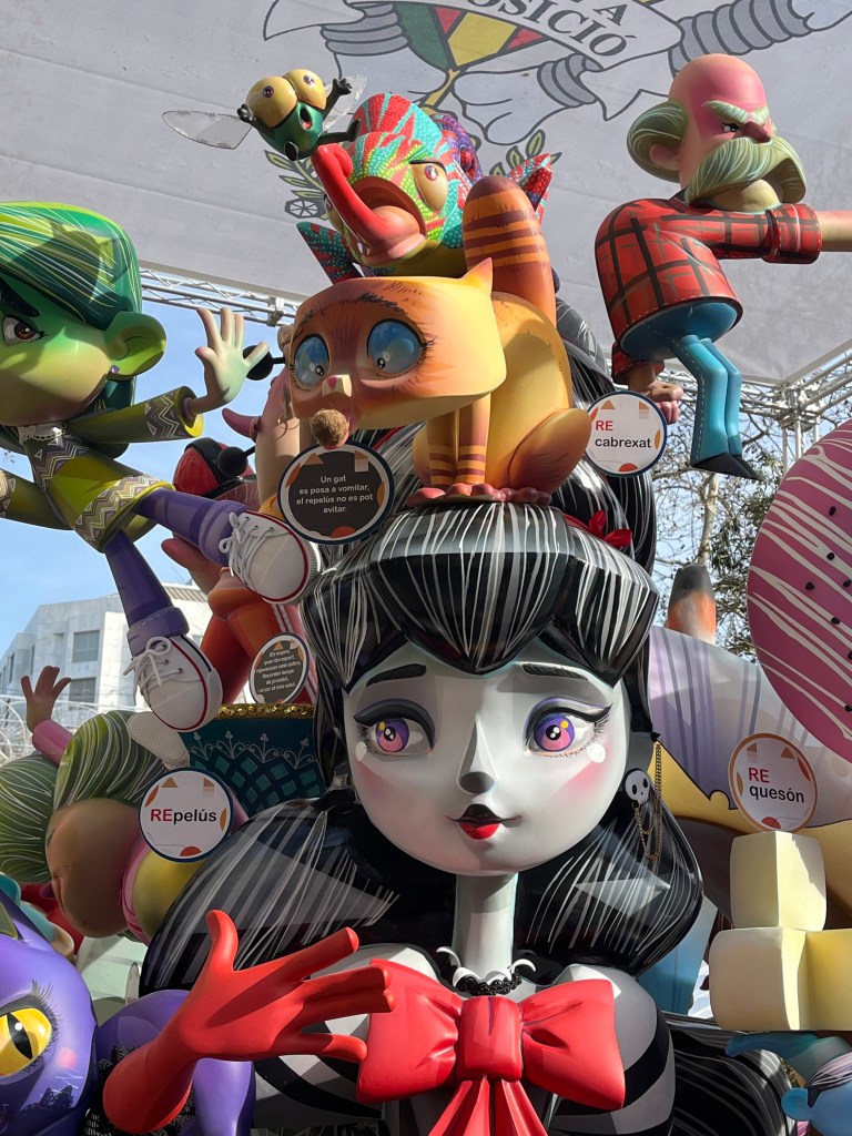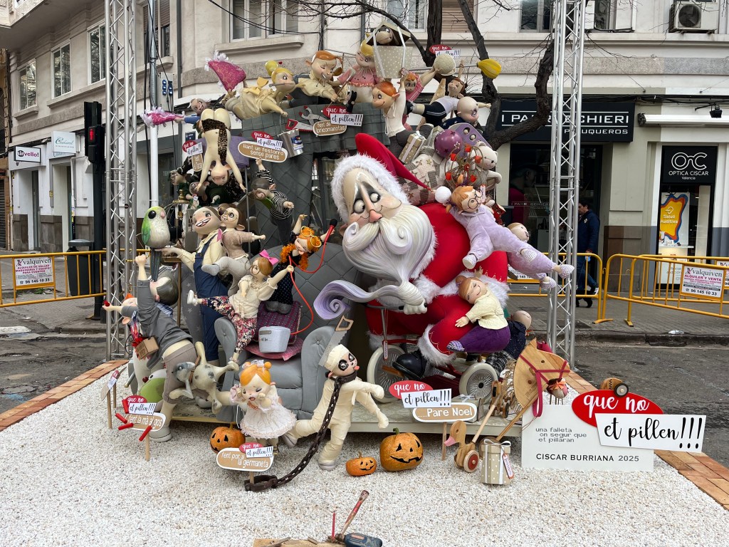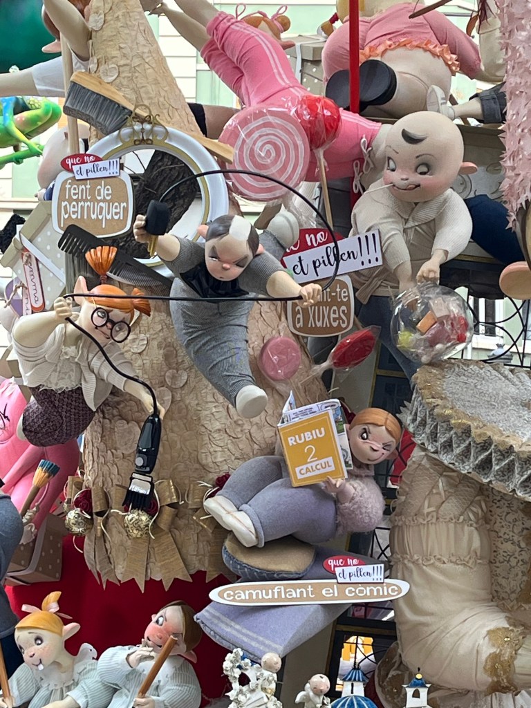 Fallas 2025 has come and gone. In a previous post I commemorated the last day of Fallas on March 19. Although the 19th is the actual holiday, the days leading up to it is when everyone celebrates all the various Fallas structures in the city. The city becomes a big party in the streets. This year Fallas was dampened (at least for me) by the weather. Most of Fallas was wet, rainy and grey. It didn’t stop the most dedicated falleros…..it´s amazing how many came out despite the rain. But nonetheless it did seem there were fewer people out and about. And it also meant that there seemed to be fewer petardos (fire crackers) and therefore slightly more peaceful. Although by the end, I my ears were definitely grateful for the respite.
